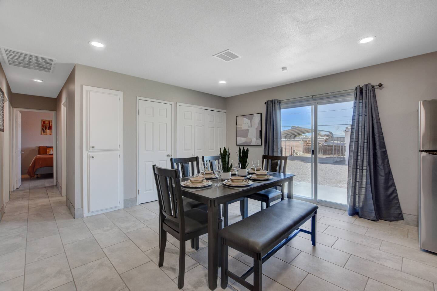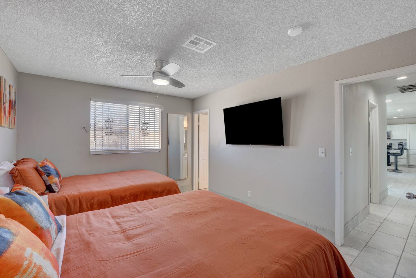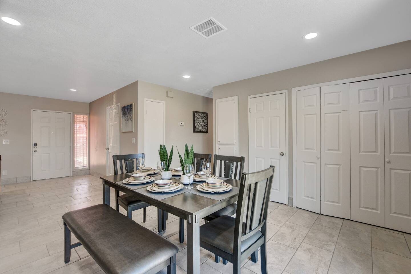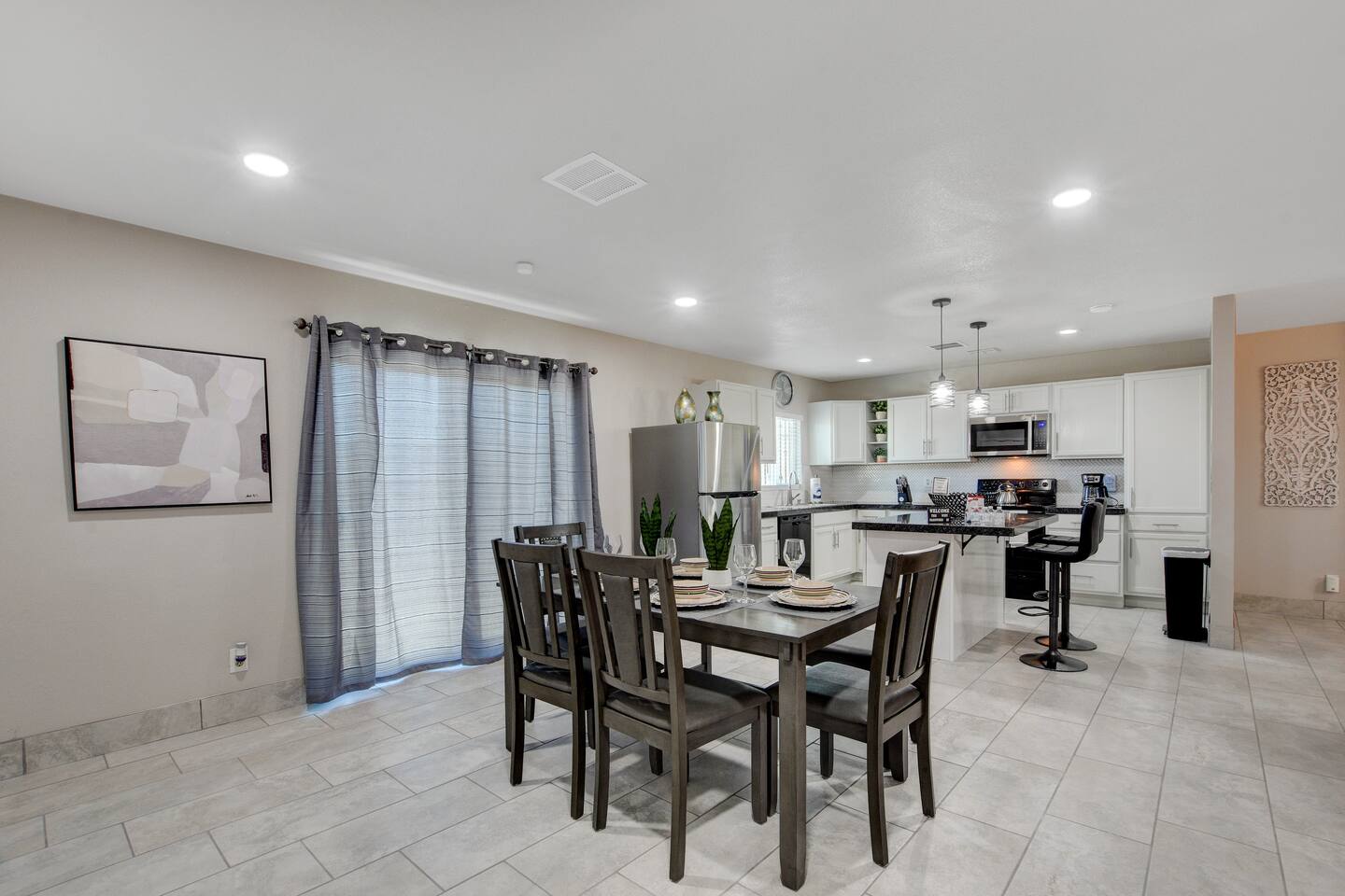 Welcome to Casa Viva C – Your Classic Retreat in North Las Vegas Experience comfort, convenience, and classic Las Vegas flair at Casa Viva C – a spacious North Las Vegas vacation rental perfect for contractors, traveling professionals, and large families or groups. 🏡 A Spacious Las Vegas Home for 10 Guests Enjoy the perfect blend of space and style with accommodations that comfortably sleep up to 10 guests: Master Suite: 2 Queen-Size Beds Guestroom I: 1 Queen-Size Bed Guestroom II: 2 Full-Size Beds Whether you're in town for work, a family getaway, or a group celebration, this home offers the space and comfort you need. ⭐️ Top Amenities for a Comfortable North Las Vegas Stay • Free High-Speed Wi-Fi – Stay connected anywhere in the home • Central A/C & Heating – Year-round climate comfort • Free Parking – Driveway fits 3-4 cars, plus ample street parking • Family-Friendly Features – Pack 'n play, toys, and a high chair • Washer & Dryer – Includes detergent and fabric softener • Iron & Ironing Board – For business travelers and long stays • Extra Linens – Additional blankets and pillows available 🎉 Make Your Stay Extra Special Enhance your Las Vegas vacation with these exclusive add-on services: • Custom Celebration Packages – Perfect for birthdays, bachelor/bachelorette parties, and more • In-Home Spray Tans – Stay golden during your stay (advance booking required) • Babysitter Recommendations – Need a night out? We’ll connect you with trusted local childcare 🔑 Full Guest Access with Easy Self Check-In Guests enjoy full access to the entire home, including all amenities. Our secure keyless entry system makes check-in a breeze. Upon arrival, you'll receive a digital welcome guide with everything you need to know about the house, top attractions, and nearby dining in North Las Vegas. 📍 Prime North Las Vegas Location Our home is located in North Las Vegas, an area known for its unique charm and local character. While the neighborhood may not be as tourist-centric as other parts of Las Vegas, we take pride in maintaining a clean, well-kept, and secure home for our guests. You'll experience a more authentic side of Las Vegas, with easy access to major highways, local amenities, and a relaxed atmosphere. Discover the authentic side of Las Vegas while still being just a short drive from the Strip, Fremont Street, and the Las Vegas Motor Speedway. 🛑 Important House Rules To ensure an enjoyable experience for all guests: • No Unauthorized Pets – Please notify us in advance • No Parties or Events – This is a quiet residential area • Quiet Hours – 10:00 PM to 7:00 AM • Security Cameras – Exterior only (backyard, garage); no indoor cameras 🛏 Perfect for: ✅ Group Travel ✅ Corporate or Contractor Housing ✅ Extended Stays in Las Vegas ✅ Family-Friendly Vacations ✅ Weekend Getaways in North Las Vegas 📅 Book Your North Las Vegas Vacation Rental Today! Casa Viva C is ready to welcome you with all the comforts of home and the vibe of classic Vegas. Whether you're planning a work trip, a family reunion, or a group getaway, this is the perfect home base for your Las Vegas adventure. Don't wait – availability goes fast. Reserve your stay now! NEARBY ATTRACTIONS: -Las Vegas Motor Speedway: Located just a short drive away, this major racing venue hosts NASCAR events, drag races, and other motorsport activities. -Nellis Air Force Base: While the base itself is not open to the public, the nearby Aviation Nation air show, held annually, offers a chance to see impressive aerial demonstrations. -The Neon Museum: Also known as the Neon Boneyard, this museum is dedicated to preserving iconic Las Vegas signs and offers a glimpse into the city’s bright past. -Fremont Street Experience: A bustling pedestrian mall in downtown Las Vegas known for its vibrant light shows, street performers, and live music. -The Mob Museum: Officially named The National Museum of Organized Crime and Law Enforcement, it provides a deep dive into the history of organized crime and law enforcement. -Las Vegas Arts District: Explore galleries, antique shops, and art installations in this vibrant and creative neighborhood. -Las Vegas Natural History Museum: This museum offers exhibits on dinosaurs, ancient civilizations, and more, making it a great stop for families. -Red Rock Canyon National Conservation Area: A bit further out but worth the drive, this area offers stunning desert landscapes and numerous hiking trails. -Springs Preserve: This cultural and historical attraction features botanical gardens, walking trails, and interactive exhibits focused on sustainability and the environment. -High Roller Observation Wheel: Located at The LINQ, this is one of the world’s tallest observation wheels and provides panoramic views of the city.