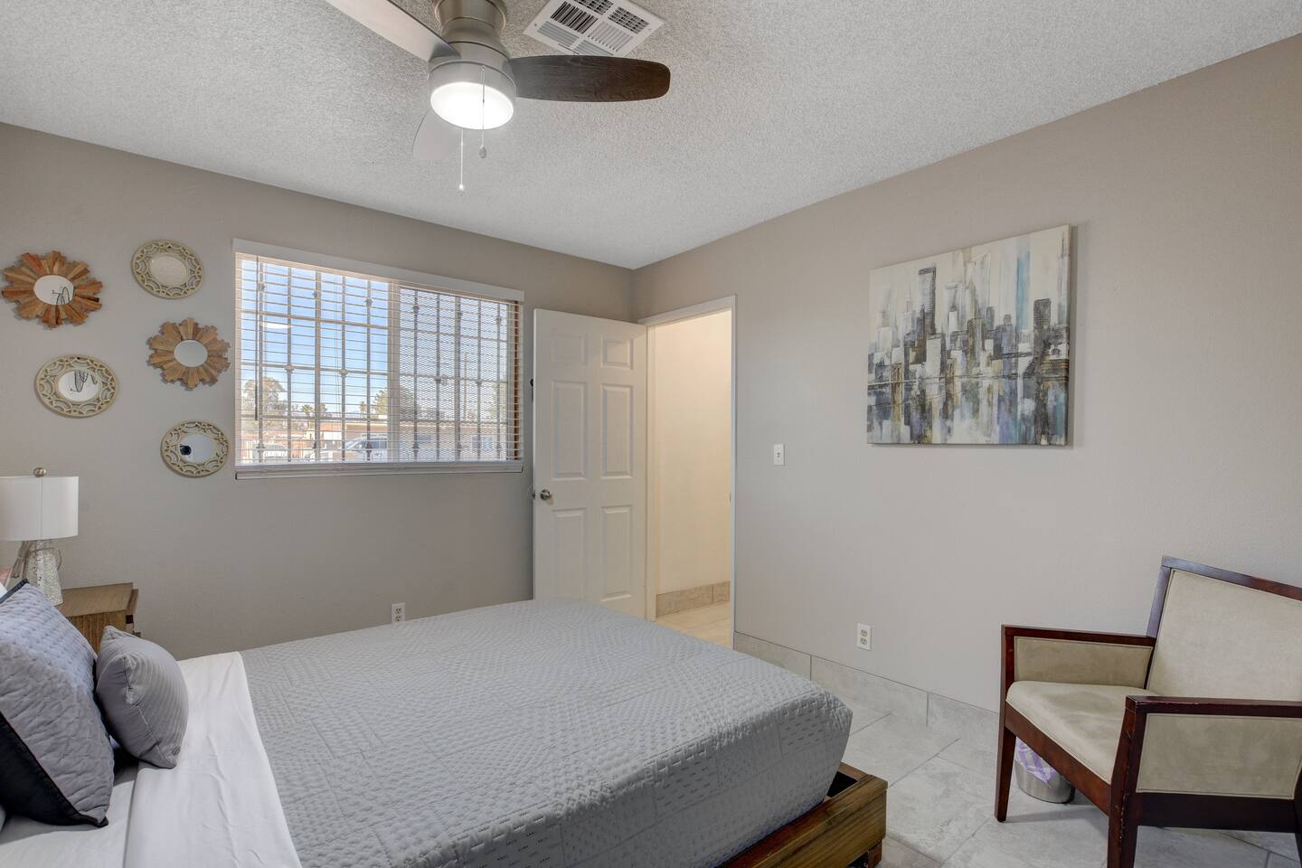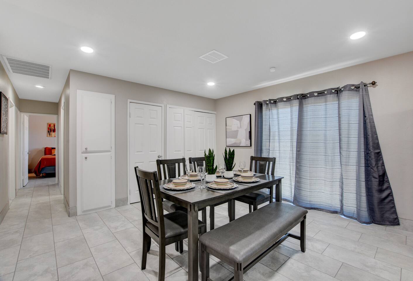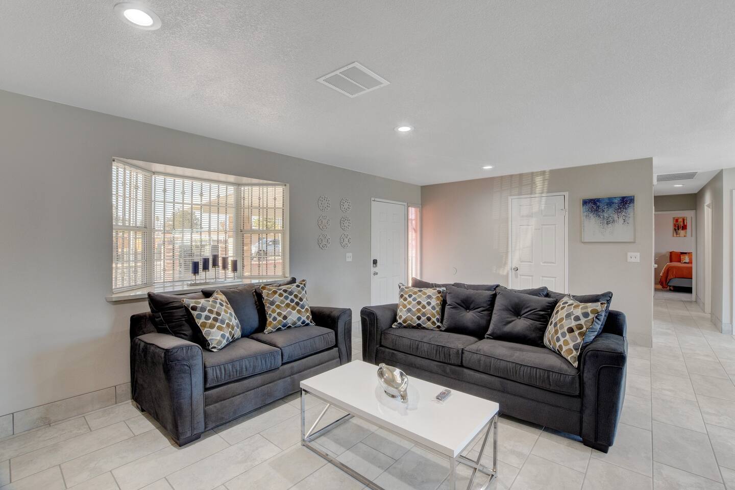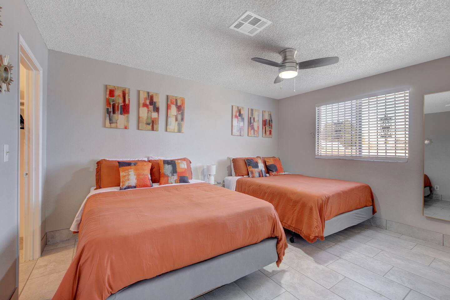 Welcome to Casa Viva C – Your Classic Retreat in North Las Vegas Experience comfort, convenience, and classic Las Vegas flair at Casa Viva C – a spacious North Las Vegas vacation rental perfect for contractors, traveling professionals, and large families or groups. 🏡 A Spacious Las Vegas Home for 10 Guests Enjoy the perfect blend of space and style with accommodations that comfortably sleep up to 10 guests: Master Suite: 2 Queen-Size Beds Guestroom I: 1 Queen-Size Bed Guestroom II: 2 Full-Size Beds Whether you're in town for work, a family getaway, or a group celebration, this home offers the space and comfort you need. ⭐️ Top Amenities for a Comfortable North Las Vegas Stay • Free High-Speed Wi-Fi – Stay connected anywhere in the home • Central A/C & Heating – Year-round climate comfort • Free Parking – Driveway fits 3-4 cars, plus ample street parking • Family-Friendly Features – Pack 'n play, toys, and a high chair • Washer & Dryer – Includes detergent and fabric softener • Iron & Ironing Board – For business travelers and long stays • Extra Linens – Additional blankets and pillows available 🎉 Make Your Stay Extra Special Enhance your Las Vegas vacation with these exclusive add-on services: • Custom Celebration Packages – Perfect for birthdays, bachelor/bachelorette parties, and more • In-Home Spray Tans – Stay golden during your stay (advance booking required) • Babysitter Recommendations – Need a night out? We’ll connect you with trusted local childcare 🔑 Full Guest Access with Easy Self Check-In Guests enjoy full access to the entire home, including all amenities. Our secure keyless entry system makes check-in a breeze. Upon arrival, you'll receive a digital welcome guide with everything you need to know about the house, top attractions, and nearby dining in North Las Vegas. 📍 Prime North Las Vegas Location Our home is located in North Las Vegas, an area known for its unique charm and local character. While the neighborhood may not be as tourist-centric as other parts of Las Vegas, we take pride in maintaining a clean, well-kept, and secure home for our guests. You'll experience a more authentic side of Las Vegas, with easy access to major highways, local amenities, and a relaxed atmosphere. Discover the authentic side of Las Vegas while still being just a short drive from the Strip, Fremont Street, and the Las Vegas Motor Speedway. 🛑 Important House Rules To ensure an enjoyable experience for all guests: • No Unauthorized Pets – Please notify us in advance • No Parties or Events – This is a quiet residential area • Quiet Hours – 10:00 PM to 7:00 AM • Security Cameras – Exterior only (backyard, garage); no indoor cameras 🛏 Perfect for: ✅ Group Travel ✅ Corporate or Contractor Housing ✅ Extended Stays in Las Vegas ✅ Family-Friendly Vacations ✅ Weekend Getaways in North Las Vegas 📅 Book Your North Las Vegas Vacation Rental Today! Casa Viva C is ready to welcome you with all the comforts of home and the vibe of classic Vegas. Whether you're planning a work trip, a family reunion, or a group getaway, this is the perfect home base for your Las Vegas adventure. Don't wait – availability goes fast. Reserve your stay now! NEARBY ATTRACTIONS: -Las Vegas Motor Speedway: Located just a short drive away, this major racing venue hosts NASCAR events, drag races, and other motorsport activities. -Nellis Air Force Base: While the base itself is not open to the public, the nearby Aviation Nation air show, held annually, offers a chance to see impressive aerial demonstrations. -The Neon Museum: Also known as the Neon Boneyard, this museum is dedicated to preserving iconic Las Vegas signs and offers a glimpse into the city’s bright past. -Fremont Street Experience: A bustling pedestrian mall in downtown Las Vegas known for its vibrant light shows, street performers, and live music. -The Mob Museum: Officially named The National Museum of Organized Crime and Law Enforcement, it provides a deep dive into the history of organized crime and law enforcement. -Las Vegas Arts District: Explore galleries, antique shops, and art installations in this vibrant and creative neighborhood. -Las Vegas Natural History Museum: This museum offers exhibits on dinosaurs, ancient civilizations, and more, making it a great stop for families. -Red Rock Canyon National Conservation Area: A bit further out but worth the drive, this area offers stunning desert landscapes and numerous hiking trails. -Springs Preserve: This cultural and historical attraction features botanical gardens, walking trails, and interactive exhibits focused on sustainability and the environment. -High Roller Observation Wheel: Located at The LINQ, this is one of the world’s tallest observation wheels and provides panoramic views of the city.