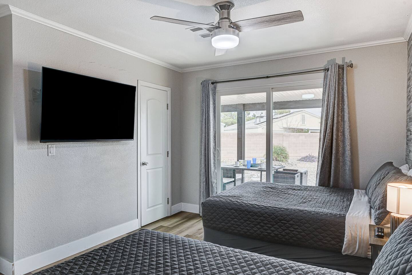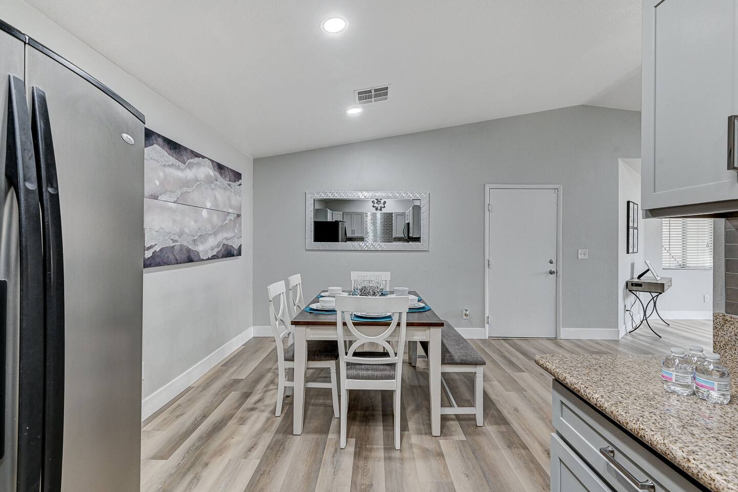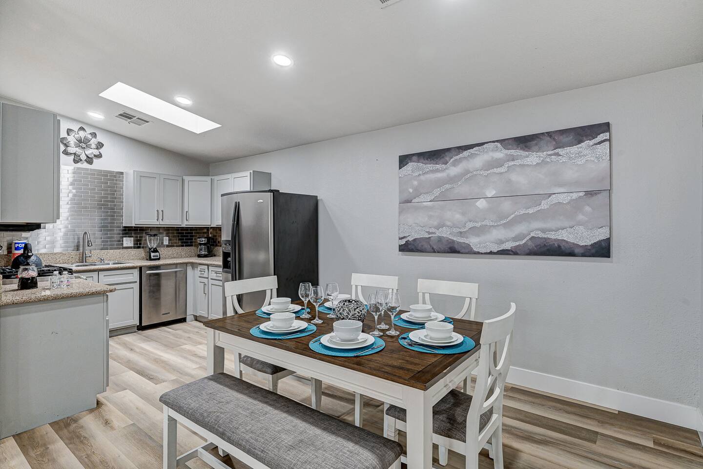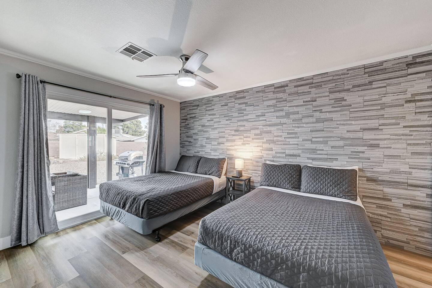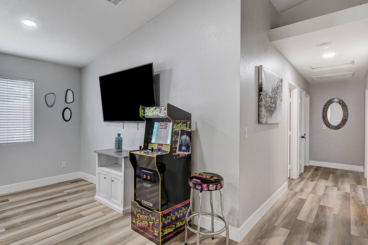 Welcome to Your Modern Las Vegas Retreat 🌟 Stylish, spacious, and perfectly located near The Strip and Downtown, this beautifully furnished North Las Vegas vacation rental is ideal for families, groups, and business travelers. Just minutes from major highways, this home offers modern comforts and a private backyard oasis — your perfect base for exploring all that Las Vegas has to offer. 🚗 Conveniently Located Near: -Major Highways: 215 & 95 -15 minutes to the Las Vegas Strip -20 minutes from Harry Reid International Airport (McCarran) Whether you're heading to a convention, a show, or a hike, everything is easily accessible from this central location. 🛏 Comfortably Sleeps Up to 10 Guests This spacious home is designed for rest and relaxation, with plenty of room for everyone: Master Suite: 2 Full-Size Beds Guestroom I: 2 Full-Size Beds Guestroom II: 1 Queen-Size Bed Perfect for families, group trips, and contractor stays in Las Vegas. ⭐️ Amenities That Make You Feel at Home • Wi-Fi: Free high-speed wireless internet throughout the home • Climate Control: Central air conditioning and heating for year-round comfort • Parking: Free parking for up to 3 cars in the driveway • Family-Friendly: Pack 'n play, high chair, and toys available • Workspace: Dedicated area with good lighting for remote work • Washer & Dryer: Includes detergent and fabric softener • Iron & Ironing Board: Available for your convenience • Extra Comfort: Additional blankets and pillows provided 🌴 Private Backyard with Outdoor Living Enjoy the Las Vegas sun in your beautifully landscaped backyard, featuring: • BBQ Grill • Outdoor Dining Area • Lounge Seating Perfect for relaxing evenings, morning coffee, or entertaining your group. 🎁 Additional Services • Special Packages: Celebrate birthdays, bachelor/bachelorette parties, and more — contact us to design your perfect VIP experience! • In-Home Spray Tans 👙: Book a convenient spray tan during your stay (advance scheduling required) • Babysitter Recommendations 🍼: We’ll connect you with trusted, local babysitters for peace of mind 🔑 Guest Access You’ll have full access to the entire home and all amenities. Check-in is easy and secure with our keyless entry system. Upon arrival, you’ll receive a welcome guide with everything you need to know about the house, nearby attractions, and local dining. 🏡 Neighborhood Overview Located in a quiet, gated community in North Las Vegas, this home is close to: - Local shopping and grocery stores - Dining and entertainment options - Hiking trails and scenic views - Public transportation and freeway access A safe, clean, and peaceful alternative to the busier tourist areas, with quick access to all the fun. 📜 Important Policies: ❌ No Unauthorized Pets – Please include any pets in your reservation to avoid additional fees ❌ No Parties or Events – To maintain peace and respect for our neighbors ✅ Quiet Hours – 10:00 PM to 7:00 AM 📸 Security Cameras – Installed on the perimeter of the home (including backyard and garage); no cameras inside 🛏 Perfect for: ✅ Families on vacation ✅ Group getaways ✅ Remote workers and digital nomads ✅ Business and contractor housing ✅ Extended stays in Las Vegas 📅 Book Your Las Vegas Vacation Rental Today! Whether you're here for a weekend getaway or an extended work trip, this modern, fully furnished home offers everything you need to enjoy Las Vegas in comfort and style. Don’t miss out – book your stay today! Things to Do: Outdoor Activities: Las Vegas Springs Preserve: Explore beautiful botanical gardens, hiking trails, and engaging museums focusing on the natural and cultural history of Las Vegas. Red Rock Canyon: If you're interested in outdoor activities, this natural area offers stunning scenery and hiking trails, though it's a bit of a drive from the Strip. Entertainment: -The Strip: Famous for its casinos, resorts, and entertainment options, the Las Vegas Strip is just a short drive away. Popular spots include the Bellagio, Caesars Palace, and the Venetian. Fremont Street Experience: Head downtown for the famous light and sound show, live music, street performers, and unique shops. Downtown Arts District: Explore local galleries, street art, and artisanal shops in this vibrant cultural area. Shows and Performances: Check out what’s playing during your stay, including Cirque du Soleil shows and various live performances. -Mandalay Bay: Located on the southern end of the Strip, Mandalay Bay features an expansive casino, a variety of restaurants, and an impressive pool area with a wave pool and lazy river. -Shark Reef Aquarium: Located within Mandalay Bay, this aquarium is home to a variety of marine life, including sharks, rays, and other exotic species. -T-Mobile Arena: If you’re into sports or concerts, T-Mobile Arena is a major venue for hockey games, concerts, and other events. Allegiant Stadium: Catch a football game or event at this state-of-the-art stadium, home to the Las Vegas Raiders and various concerts and events throughout the year. Shopping: The District at Green Valley Ranch: A nearby shopping center with a mix of shops, restaurants, and entertainment options. Fashion Show Mall: A bit further away on the Strip, this mall features a wide range of retailers and dining options. Las Vegas South Premium Outlets: For shopping enthusiasts, this outlet mall offers a wide range of designer and brand-name stores at discounted prices. Town Square: A great outdoor shopping center with a variety of shops, restaurants, and a movie theater. Family-Friendly Activities: Shark Reef Aquarium: Located at Mandalay Bay, it’s a fantastic spot for families to see diverse marine life. Las Vegas Natural History Museum: Great for all ages, with engaging exhibits on dinosaurs, ancient Egypt, and more. Unique Experiences: High Roller Observation Wheel: Ride the tallest observation wheel for stunning views of 