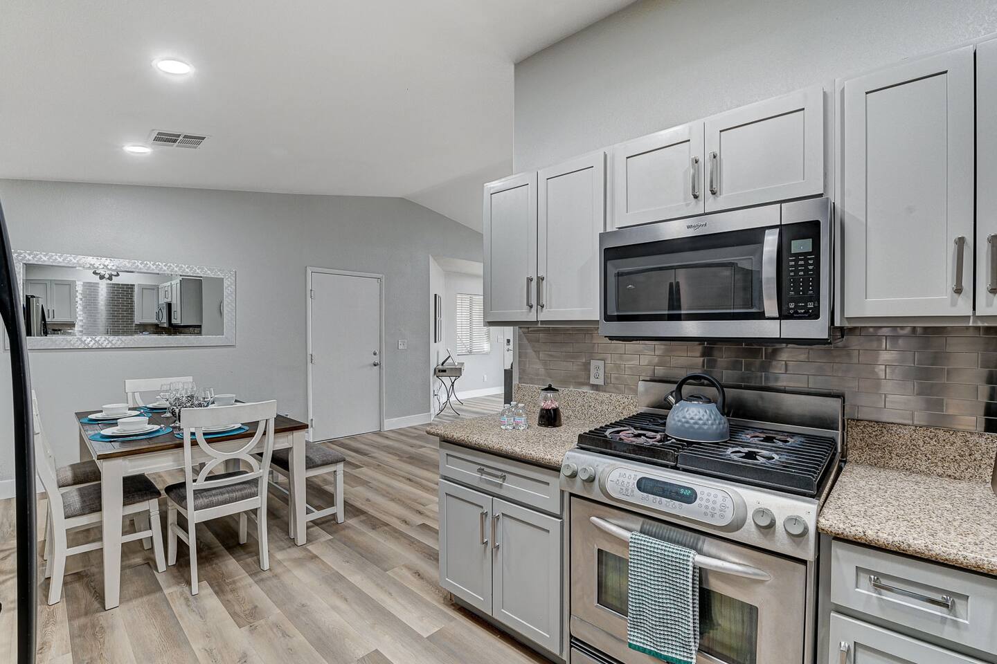 Our beautiful property is located in a convenient, safe, and gated community. This community is quiet and perfect for a gateway with either family or friends or both!